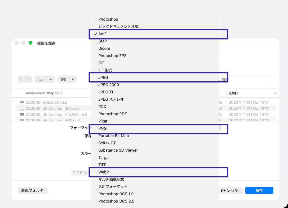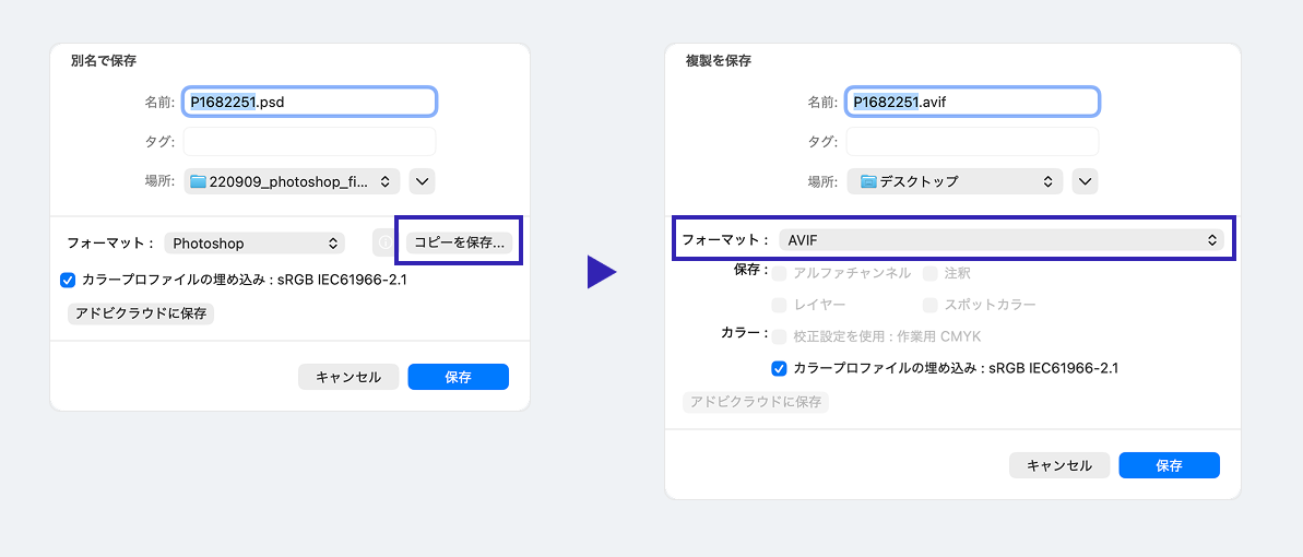 For more on using these formats on the web, see 次世代画像形式のWebP、そしてAVIFへ。変わり続ける技術に対応するweb制作の黄金解.